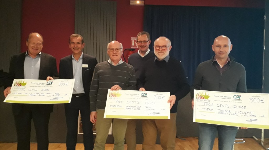 Lors de son Assemblée Générale 2019, qui s'est tenue à la salle des traouiëro le jeudi 14 mars, le Crédit Agricole de Perros-Guirec a souhaité soutenir 3 associations pour leur différentes initiatives dans le cadre des Trophées de la vie locale. Le Team Côte de Granit Rose a été récompensé pour la création du Team Trégor Cyclisme, une structure en faveur des jeunes sportifs (17 et 18 ans) de haut niveau. https://www.tcgr.fr/en-savoir-plus/team-tregor-cyclisme-88187