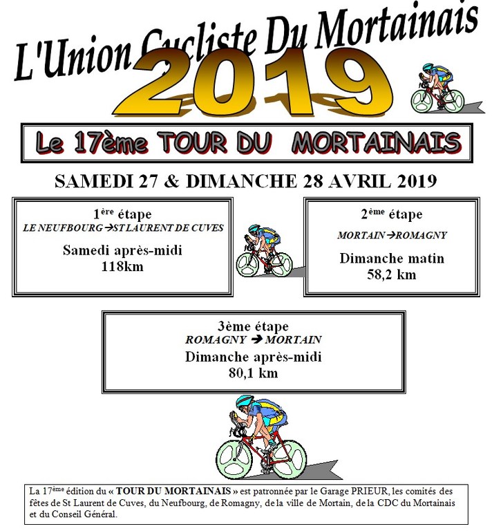 Le Team Côte de Granit Rose a été sélectionné pour participer le 27 et 28 avril 2019 à la prochaine course à étapes "TOUR DU MORTAINAIS 2019" (50).