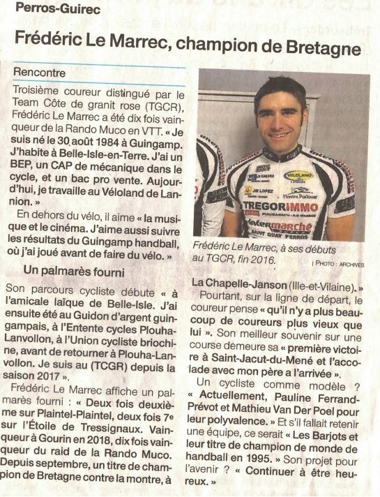 Lors de l’assemblée générale du Team Côte de Granit Rose, 3 coureurs ont été élus coureurs de l'année, à savoir, Lilian JOUANJAN, Hervé PRUDHOMME et Frédéric LE MARREC. Ils viennent de recevoir les honneurs de la presse.