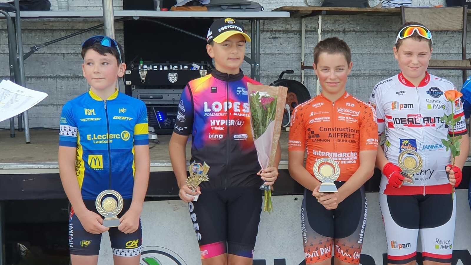 Noha Damany associé à Tristan Favennec de L'UC Briochine et Baptiste Leveque de Cc Moncontour monté sur la troisième marche à moins d'une seconde.
