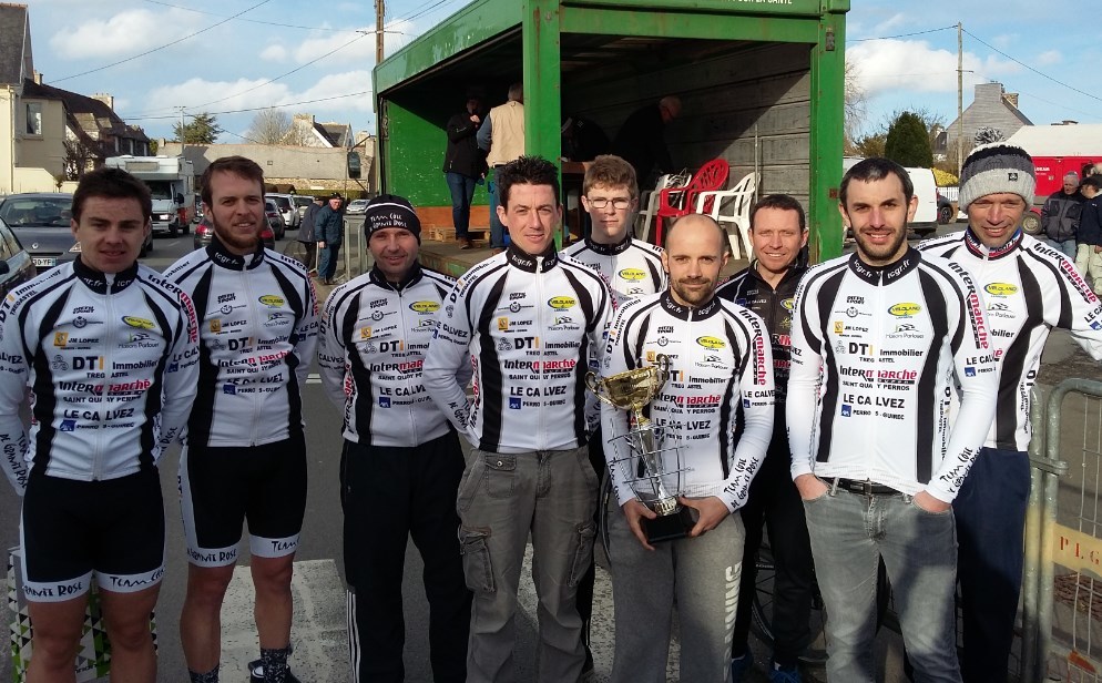 Samedi dernier avait lieu dans la banlieu de Lanvollon la 25 ème édtion de la célèbre Etoile de Tressignaux. Sur cette 2ème classique de début de saison dans le département, le Team été représenté par Léonard BALAY, Tanguy GILME, Vincent GUELOU, François-Marie HERISSON, Jonathan LEMAITRE, Fred LE MARREC, Mathieu POUPIER et Emeric TASSEL. Le directeur Sportif était Christian LE PELLEC, Pierre BOUGAN le mécano assisté de Jean-Marie LE BELLEC.