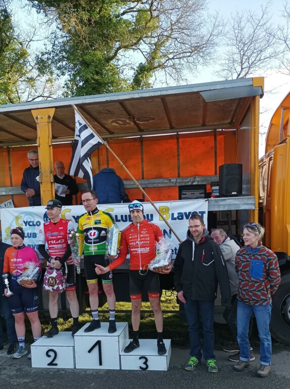 En D3-D4 , ça part très vite, dès le 2ème tour, 2 coureurs sortent et le peloton roule derrière. A mi-course une quinzaine de coureurs sortent en contre attaque. Le rythme est trop rapide pour François Le Petit qui reste au chaud dans le peloton qui perd des éléments tour après tour. Le peloton récupère des contre attaquants et récupère des lâchés des D1-D2 . Le podium reste encore jouable et François se place en tête de ce qui reste du peloton au pied de la dernière bosse. Tout le monde se regarde, François décide d'attaquer et résiste à tous sauf à un coureur de Pontivy. Il finit dans sa roue et se classe 12ème au scrach et 3ème en D4. Premier podium de la saison sous les nouvelles couleurs du Team Côte De Granit Rose.