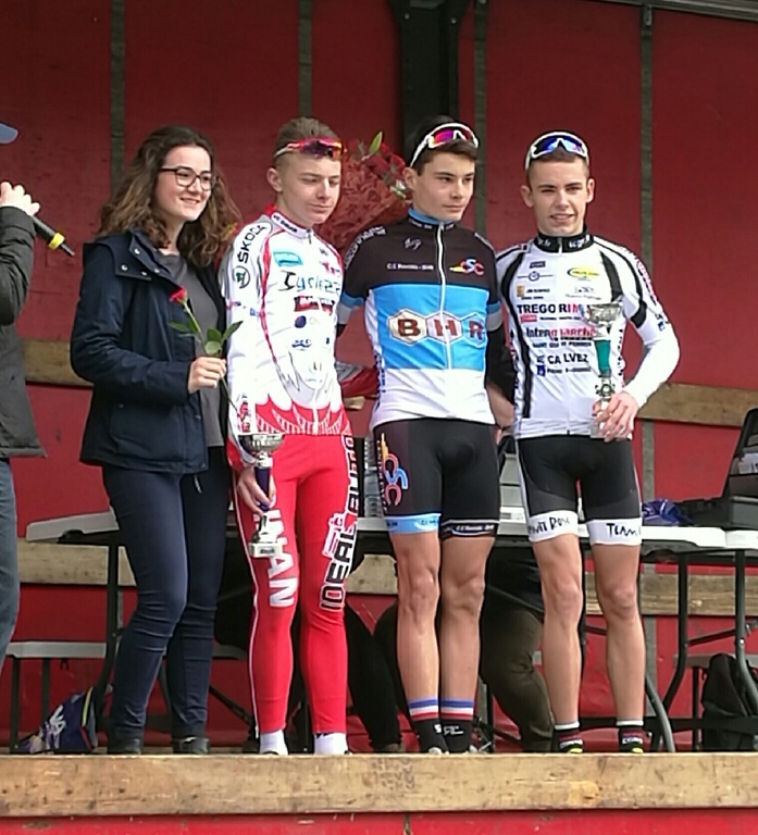 En cadet Thomas KERAUDREN décroche son premier podium de l'année. Il s'était échappé à 2 sur ce circuit difficile avec une belle bosse à l'arrivée.