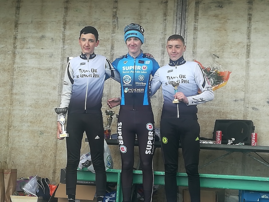 L'EC de Paimpol organisait le Tro Bro Minard Plouezec. Sur un circuit de 3.7 km avec des Ribins Adrien CHIPAULT, Corentin PRIMARD et Amaury LOYE ont montré leurs courages malgré une météo très défavorable avec des bourasques de vent et la pluie. Un homme par seul dès les premiers et derrière on retrouve dans un groupe de 3 Adrien et Corentin, plus loin Amaury.