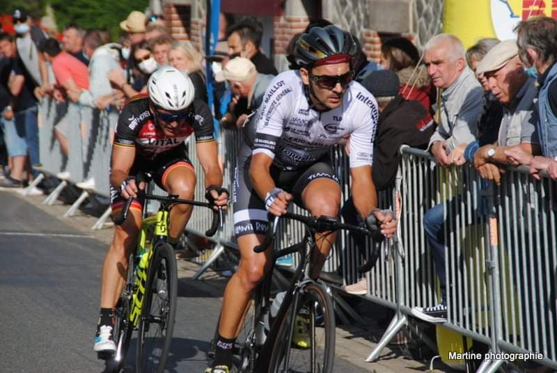 Jonathan LEMAITRE sort seul à mi-course et reviens sur le groupe, 2 coureurs se relévent et le 3me prend la roue de Jonathan mais ne veut pas collaborer, Jonathan continue de rouler et tente de partir seul dans la montée à 1-2 km de l'arrivée mais une violente crampe l'arrête net et dois laisser filer le futur vainqueur.