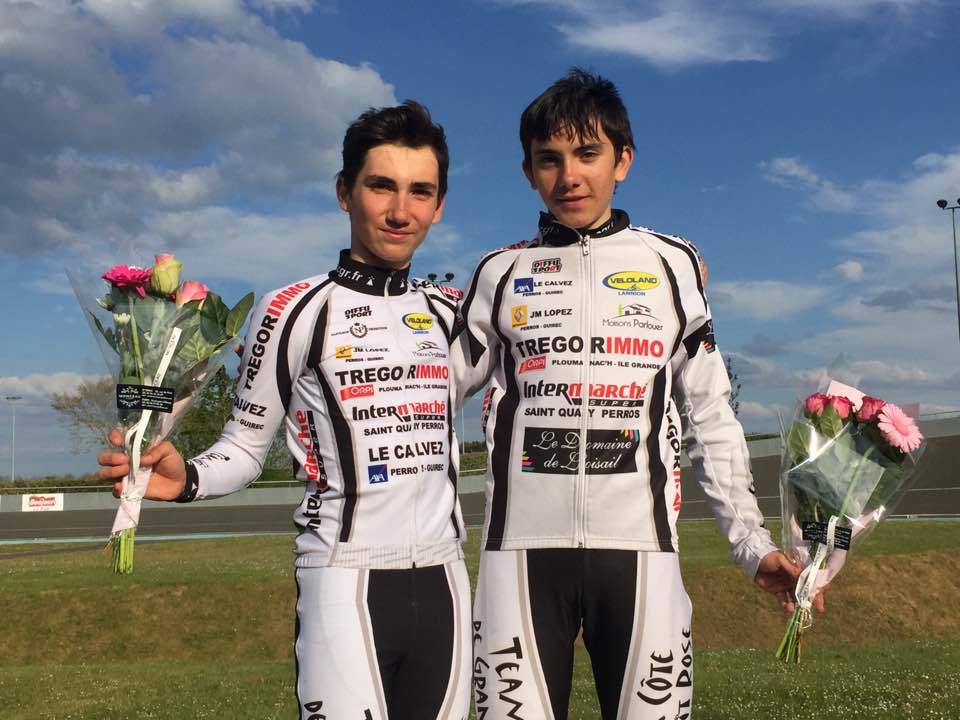 1ère Manche du Challenge de Bretagne Piste A Pordic . Nos cadets se placent pour le général de ce championnat de Bretagne par points. Au Scratch . Nolann 7 ème Alex 9 ème. Course aux Points Alex 2 ème Nolann 11 ème. Américaine Victoire de nos 2 compères .Une belle journée pour nos pistards du TCGR.