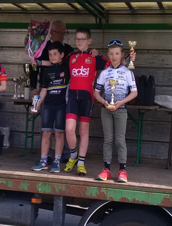 Sur un circuit plat dans l'ensemble avec 5 Tours de 4,5 km, Léo LE BRIS HULEN essaye plusieurs fois de sortir et contre des échappées, mais le parcours pas essayé sélectif , il n'arrive pas à faire la différence. C'est au sprint que se joue la victoire et Léo bien placé sur les avants poste termine à une très belle 3 ème place.