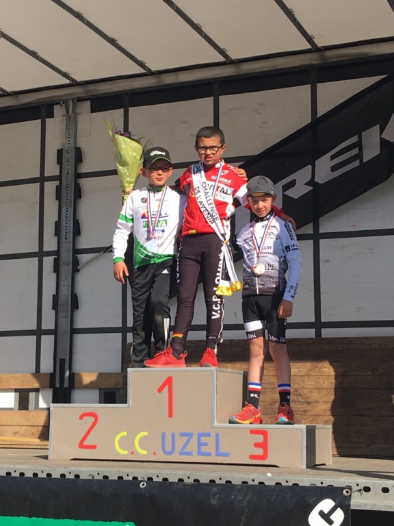 Dimanche 13 Mai se déroulait le Trophée Départemental des Ecoles de Cyclisme à Uzel. Notre jeune Pupille Louis LE BELLEC LEENAERT participait à ce trophée. Il fallait disputer un cyclo cross,une épreuve de vitesse et une course sur route. Louis est resté homogène sur toutes les épreuves, terminant à chaque fois dans le trio de tête sur 50 pupilles.